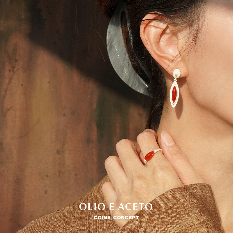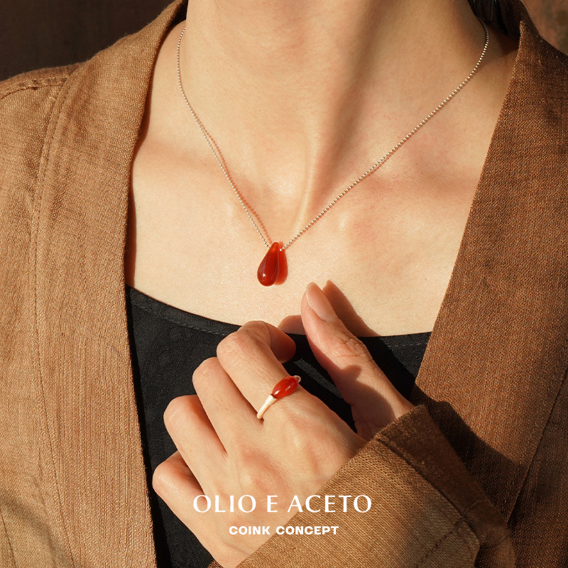OLIO E ACETO 纯银红玛瑙水滴戒指 原创设计师磨砂礼物高级质感