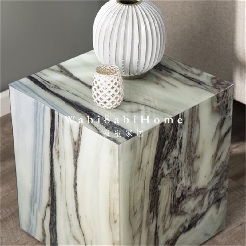 天然绿色奢石大理石别墅角几设计立柱墩子餐桌展台摆件雕塑台底座
