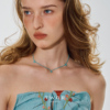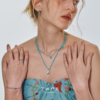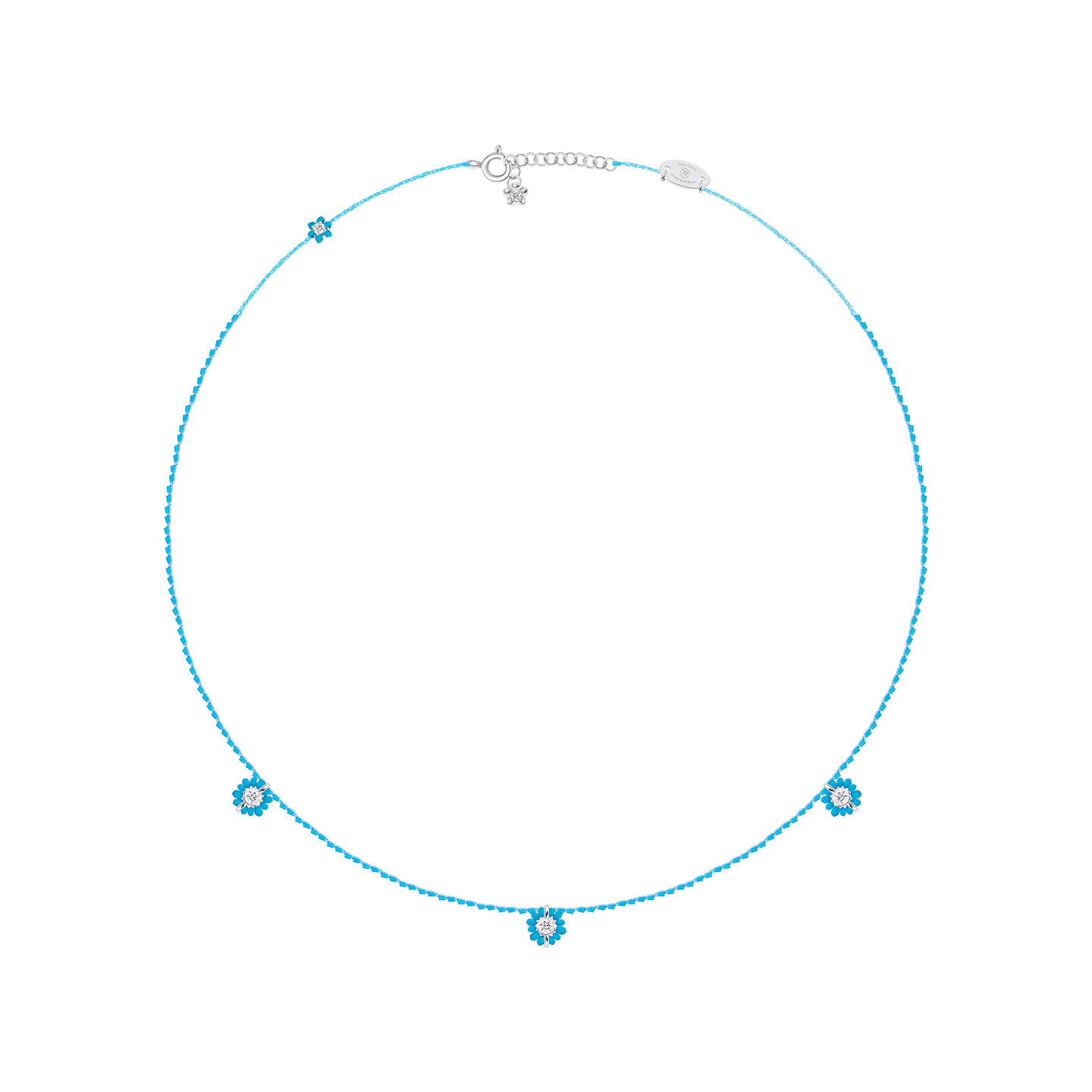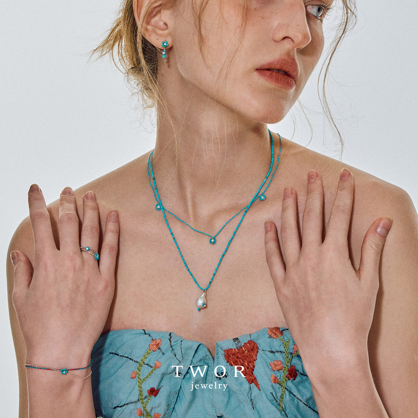 TWOR缇坞/S925银复古湖纹绿松石三朵花编织项链小众度假配饰颈链