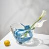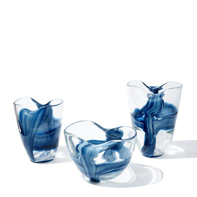 北欧风手工透明褶皱蓝色凤尾玻璃花瓶鲜花台面样板房客厅装饰花盆