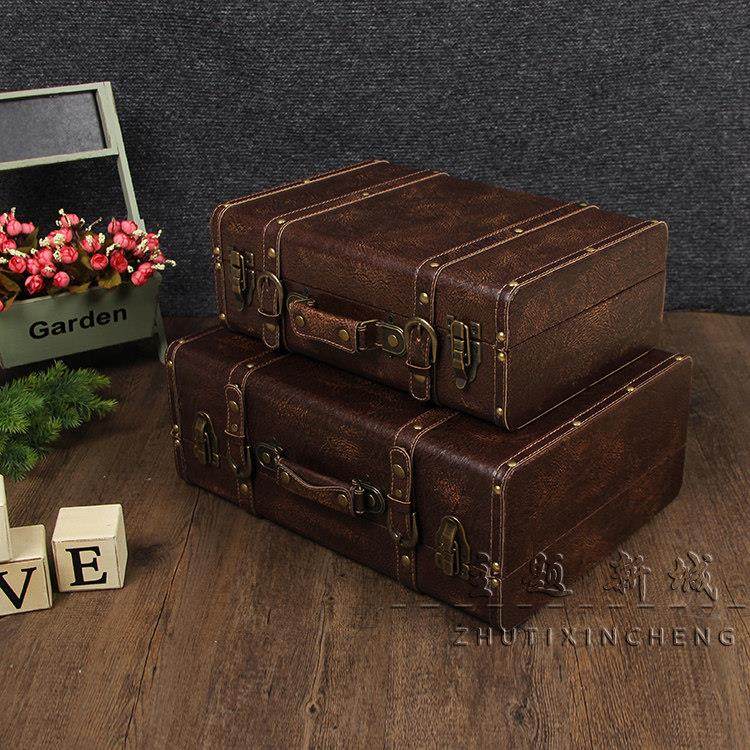 婚纱照相馆摄影道具外景拍照橱窗摆件覆古手提箱子老式木箱彷古皮