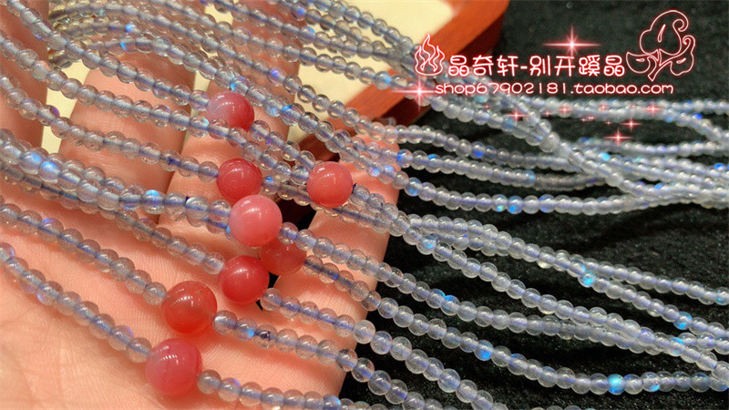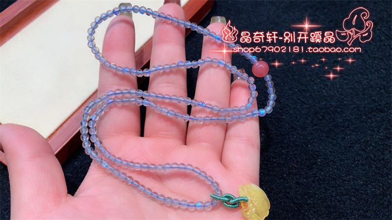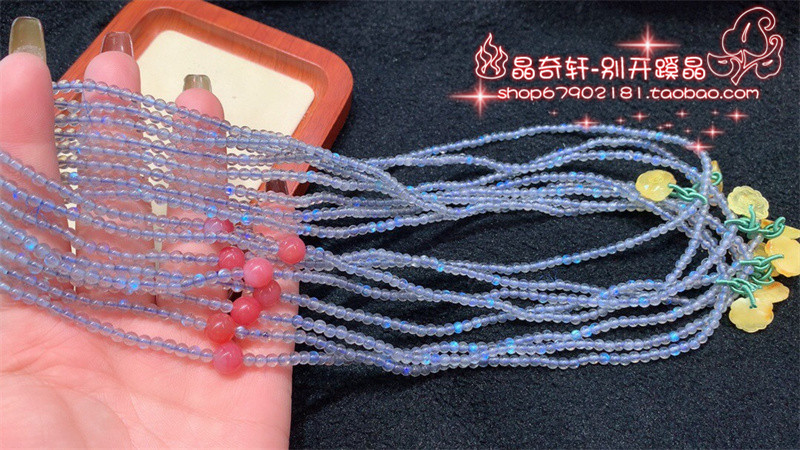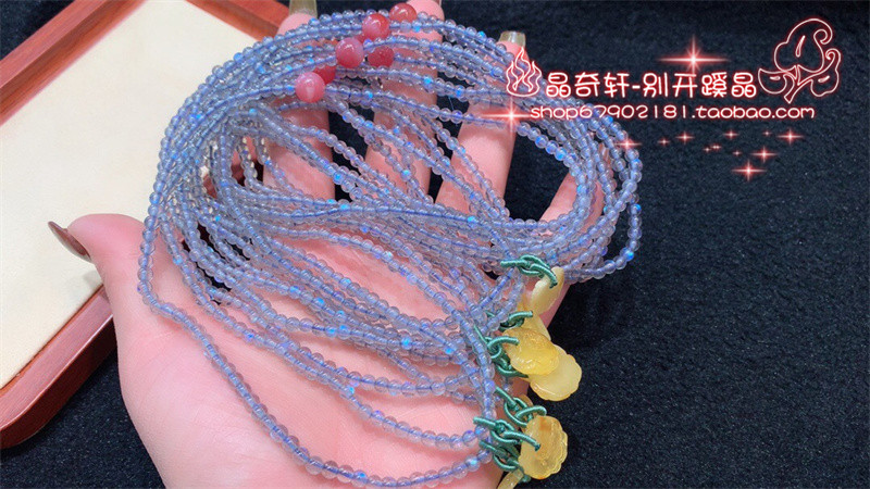 天然灰色月光石手链3.5mm拉长石多圈蓝色金色月光石搭蜜蜡锁手串