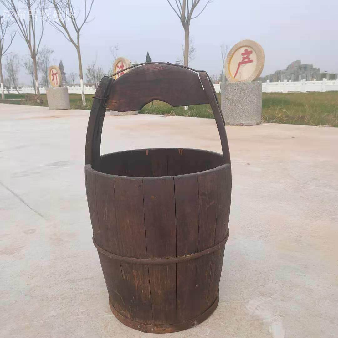 民俗老物件农村农具水车木犁播种机米斗竹簸箩木水桶斗笠怀旧摆件