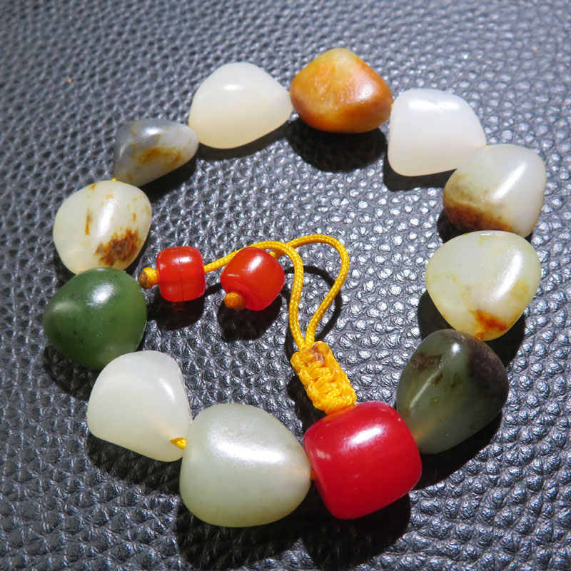 震惊方言精品和田玉佩戴级特色新疆挂金皮多宝白玉籽料原石手串w1
