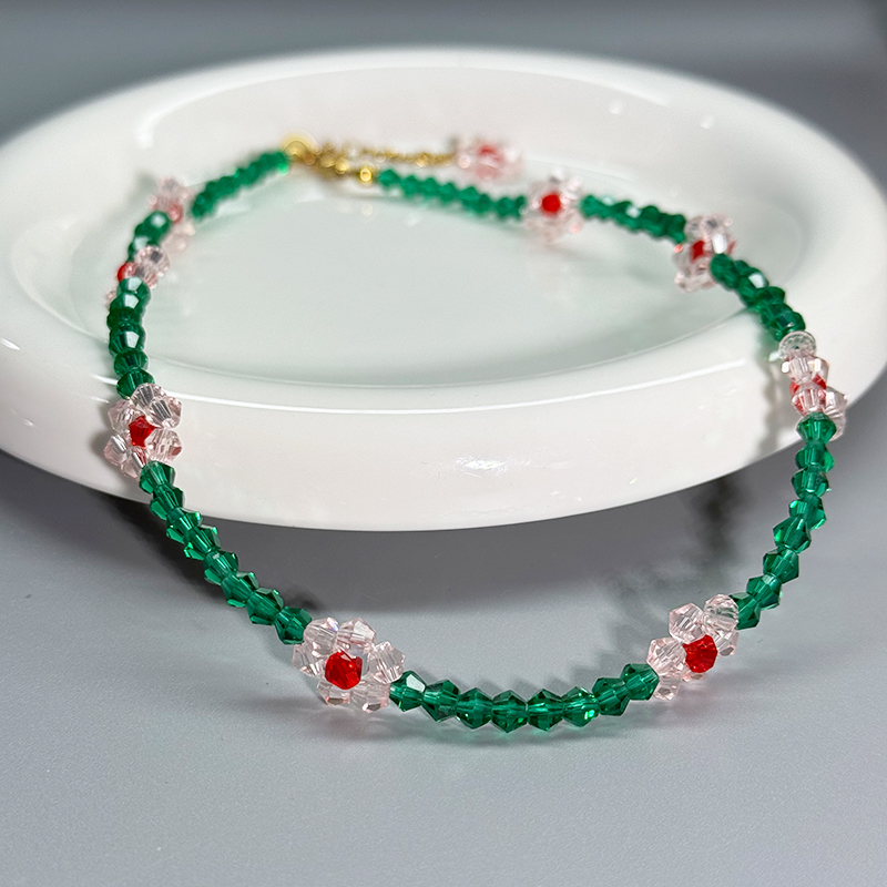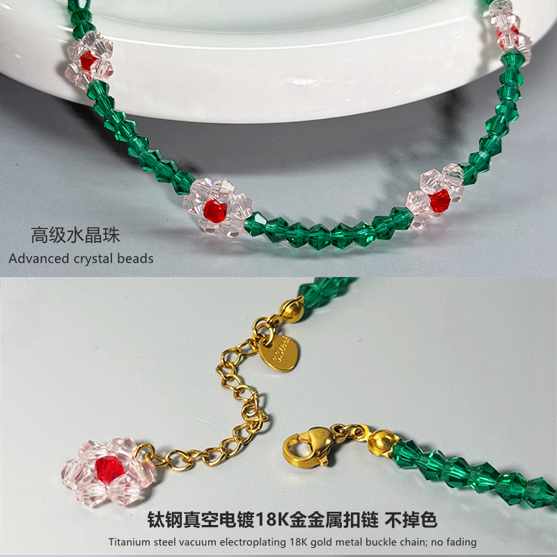 不掉色古力娜扎同款绿色水晶串珠花朵项链女锁骨链手链小众气质潮
