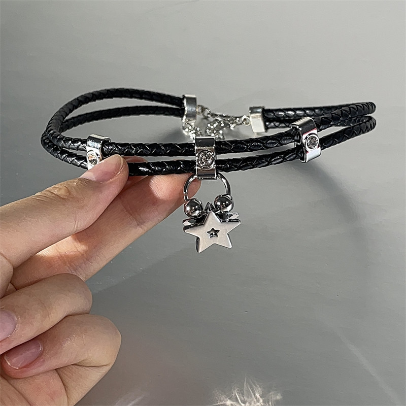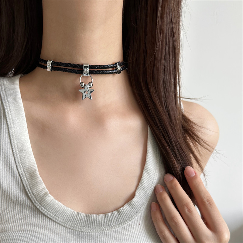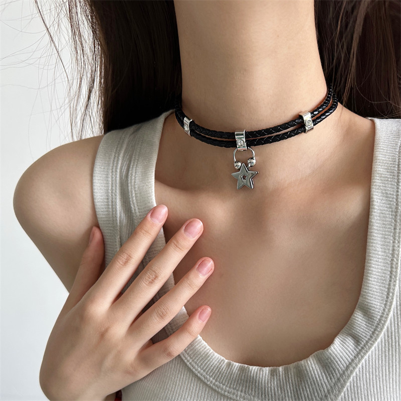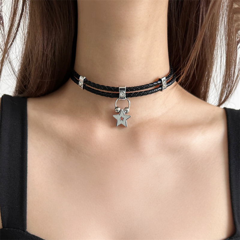 复古欧美风y2k辣妹黑色皮质choker五角星项圈女小众个性脖颈链潮