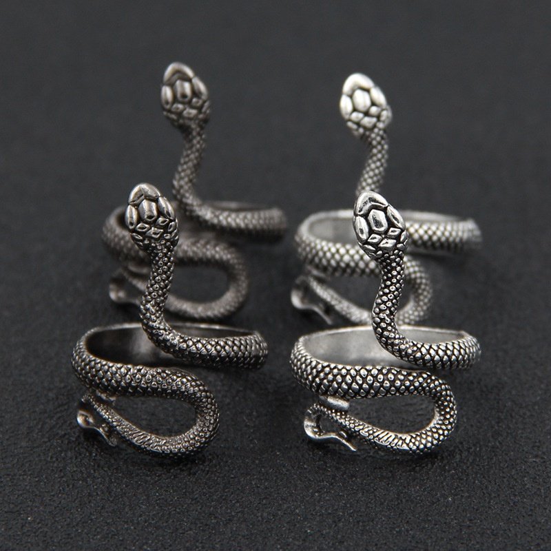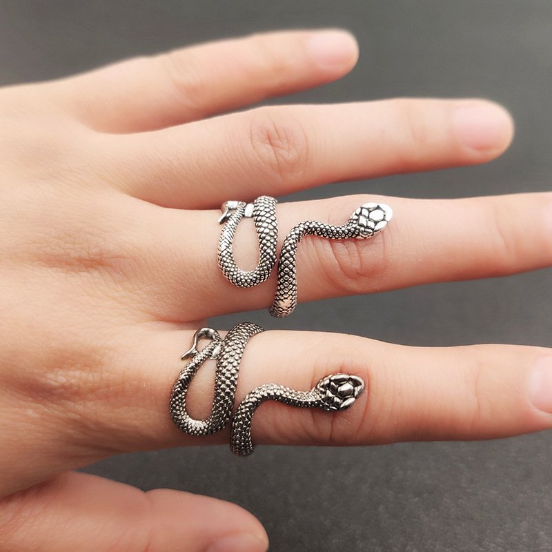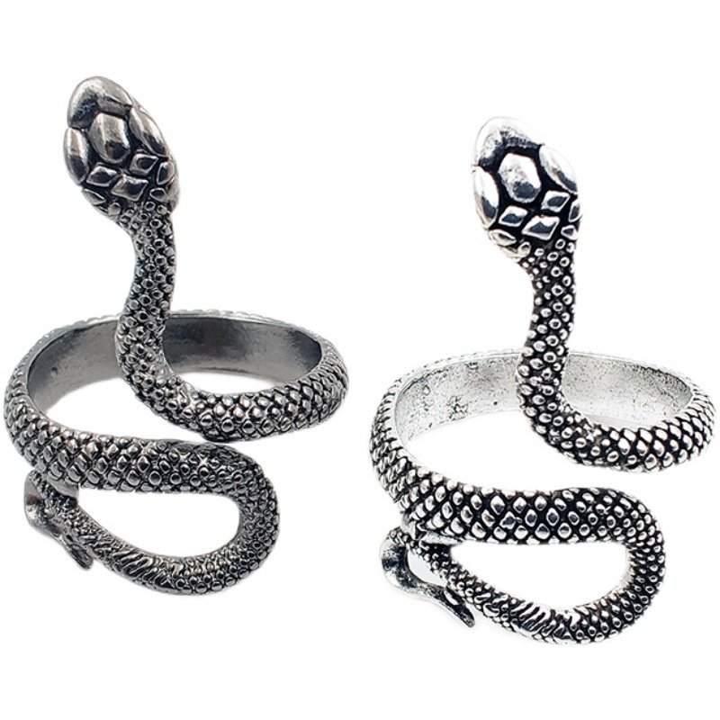 新款跨境复古镀银电镀灵蛇戒指男女通用开口合金蛇形指环朋克