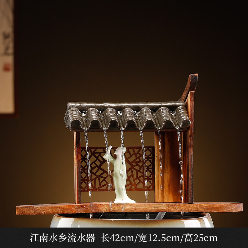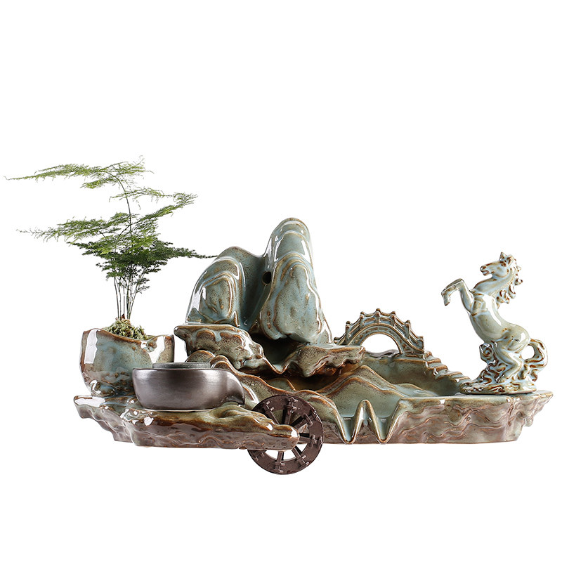 陶瓷自动循环流水鱼盆鱼池鱼缸流水搭配喷泉瀑布造景配件装饰摆件