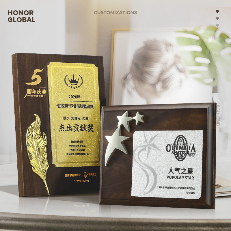 奖牌定制定做实木质荣誉授权牌创意雕刻金箔商加盟牌匾订制作年会