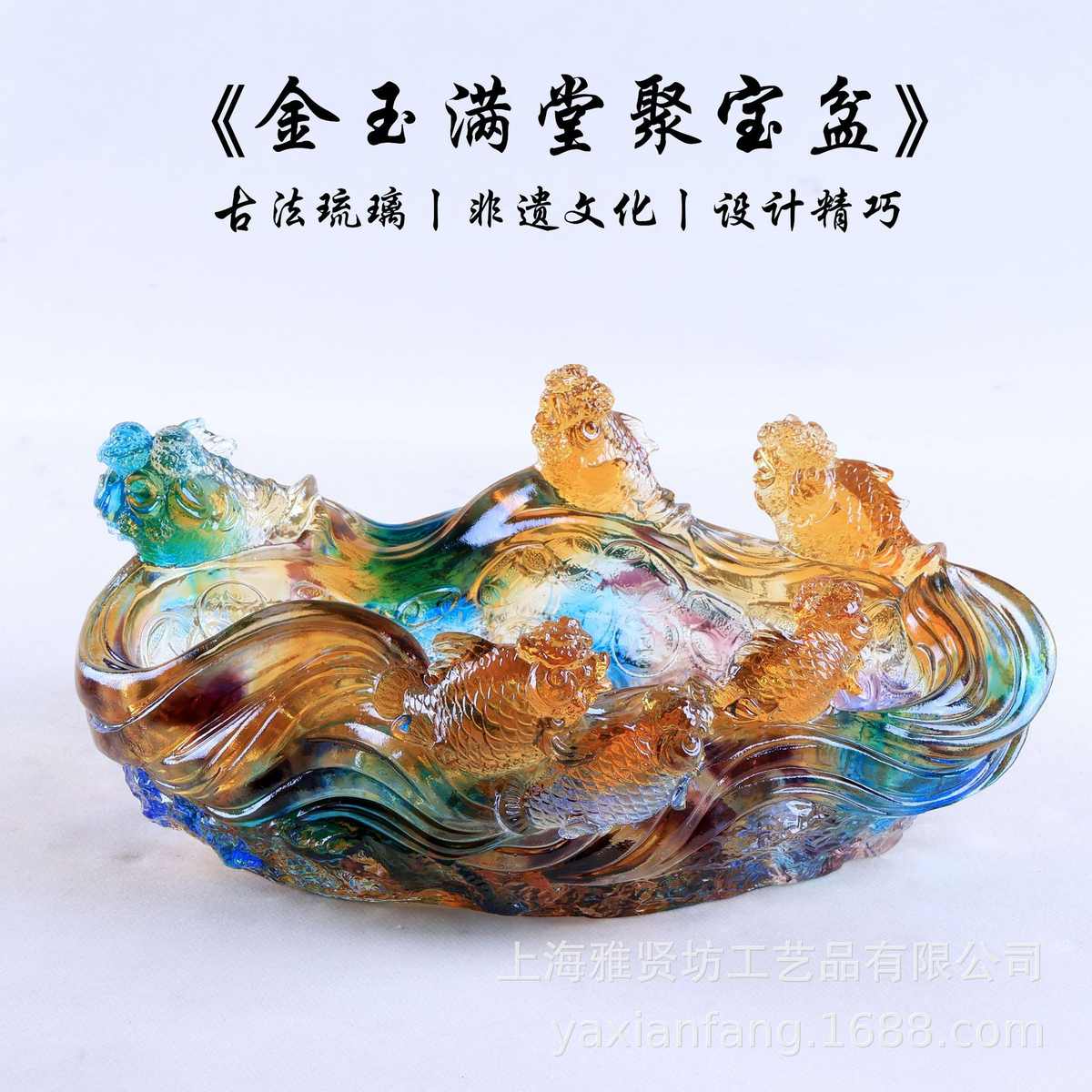 琉璃鱼摆件金玉满堂聚宝盆家居客厅装饰品摆件新中式软装