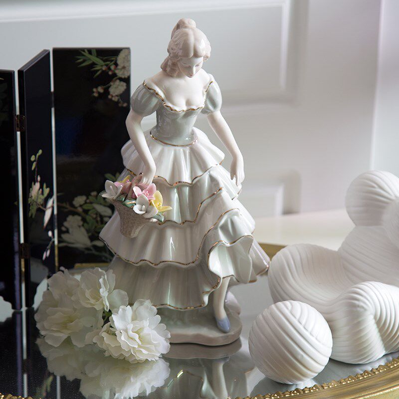 中古瓷偶提裙女孩高级感法式公主桌面小屏风氛围感装饰陶瓷蓝摆件