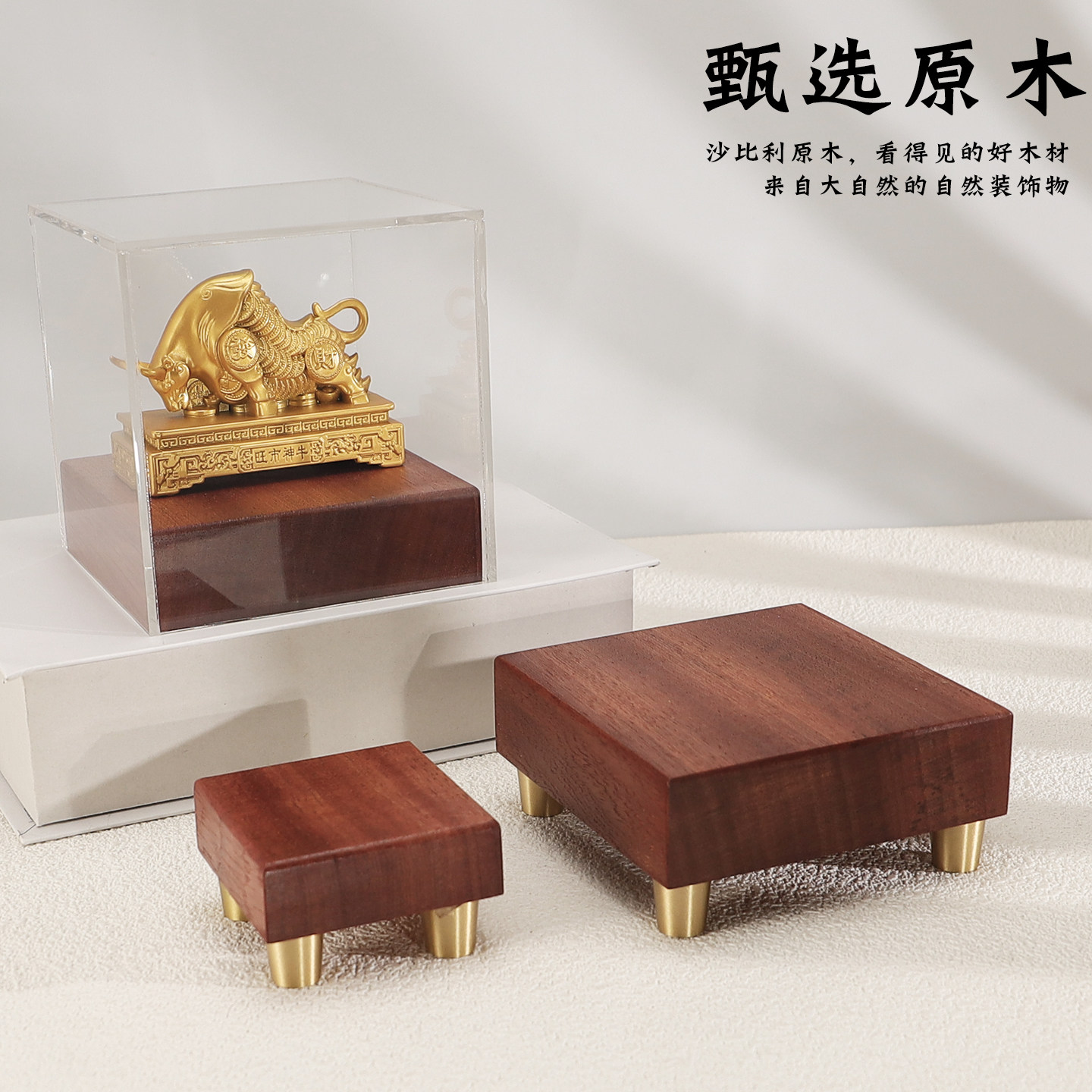 乌檀木实木黄铜摆件底座花瓶底托奇石工艺品佛像奖牌底座可定制