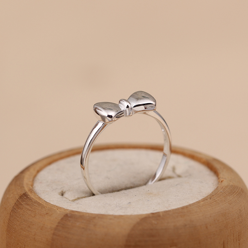 S925纯银戒指女细指环蝴蝶结韩版个性在逃公主创意食指尾戒银戒子