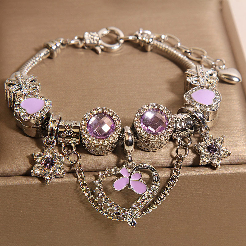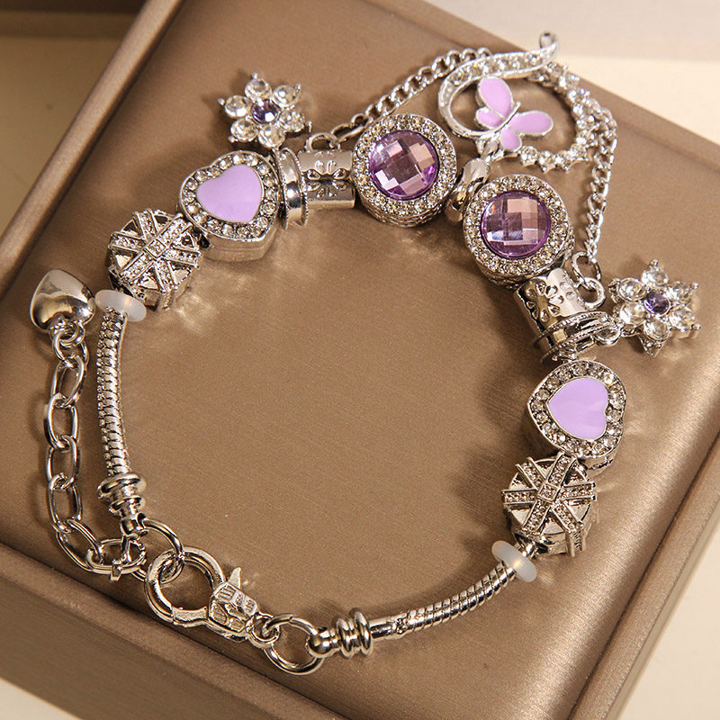 新中式紫色潘家手链女轻奢小众高级感爱心星星吊坠手串手环手饰品