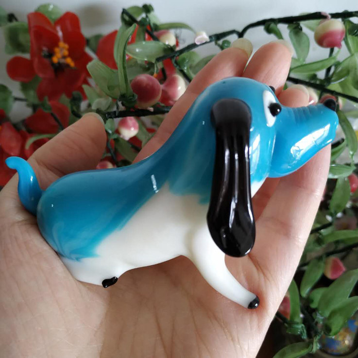 80年代出口创汇期北京料器厂纯手工老料器琉璃小狗一家摆件工艺品