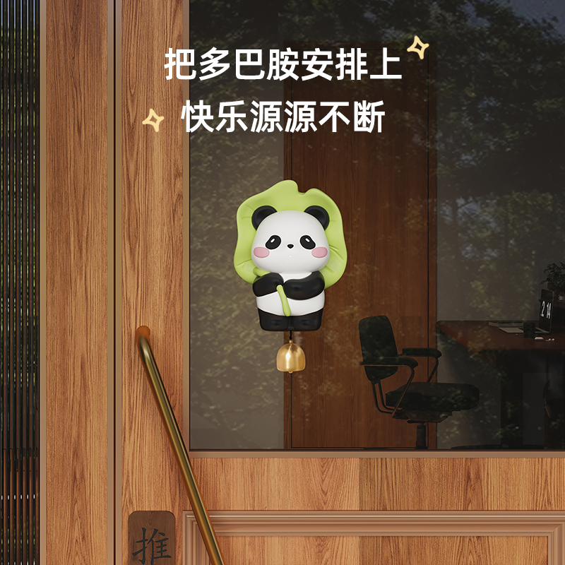 可爱熊猫多巴胺门铃磁吸进门提醒吸门式风铃入户铃铛装饰乔迁礼物