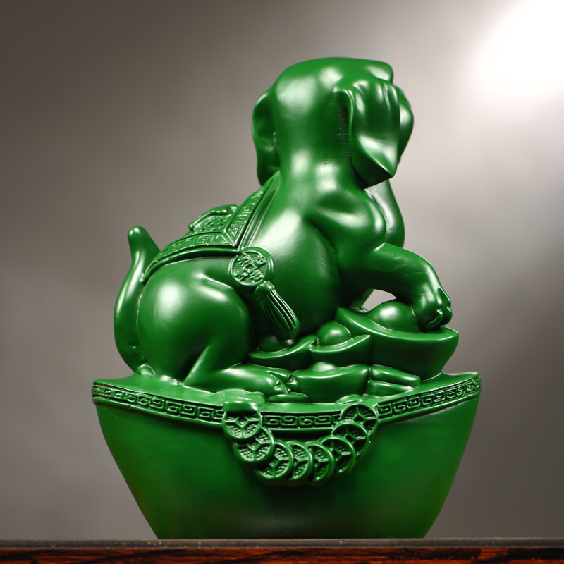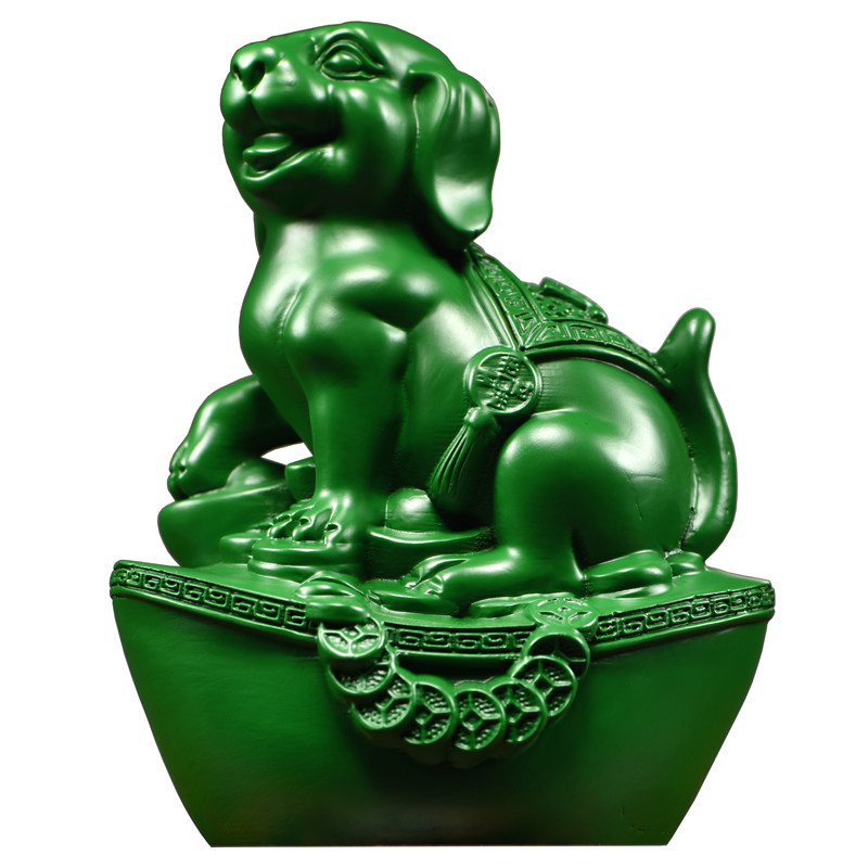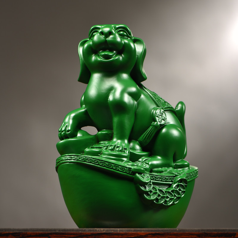 绿色木雕狗摆件实木十二生肖狗摆设家居客厅电视柜办公装饰工艺品