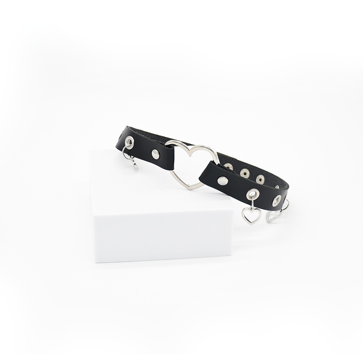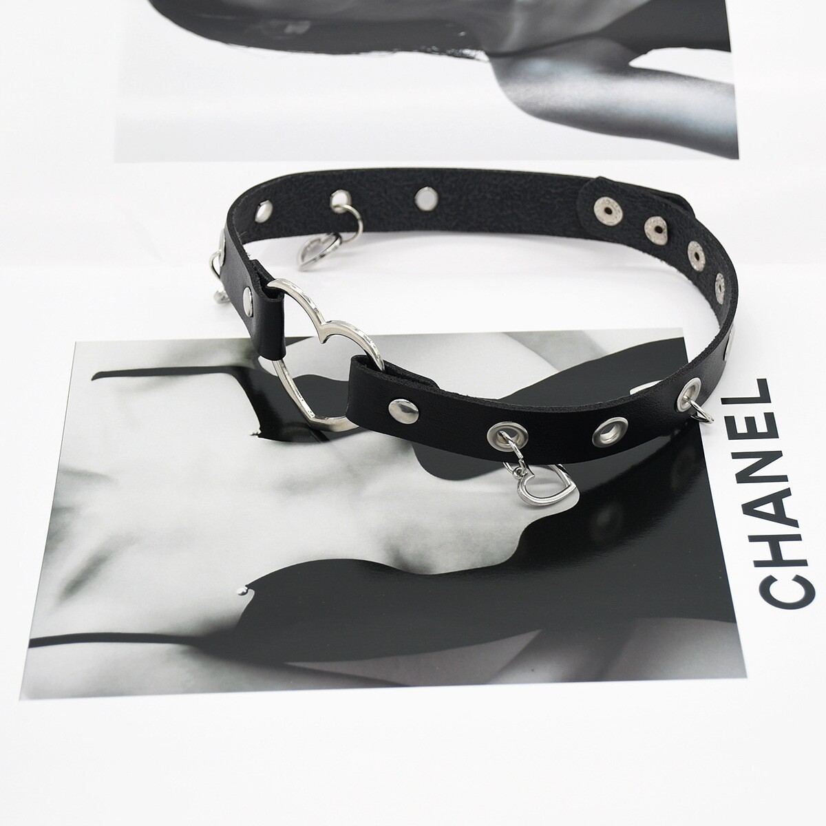 甜酷辣妹风黑皮大爱心项圈金属choker 吊心黑色小众个性锁骨链