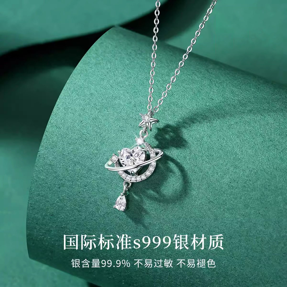 2025新款S999纯银锁骨足银项链女生星月小众高级感生日礼物送女友