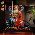 黄铜赵公明财神爷神像客厅供奉彩绘铜像武财神赵公明骑虎像摆件