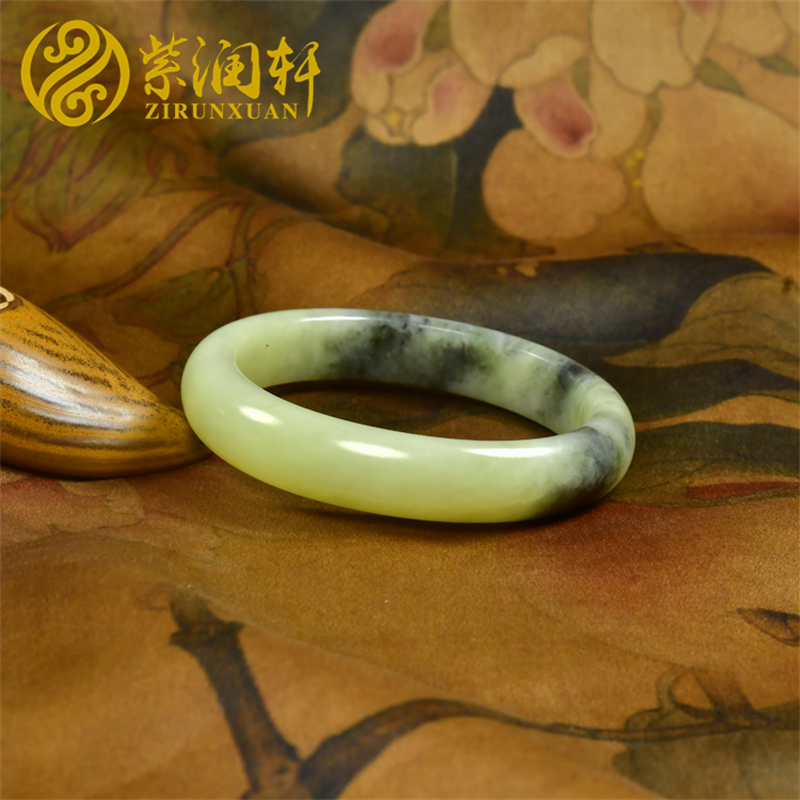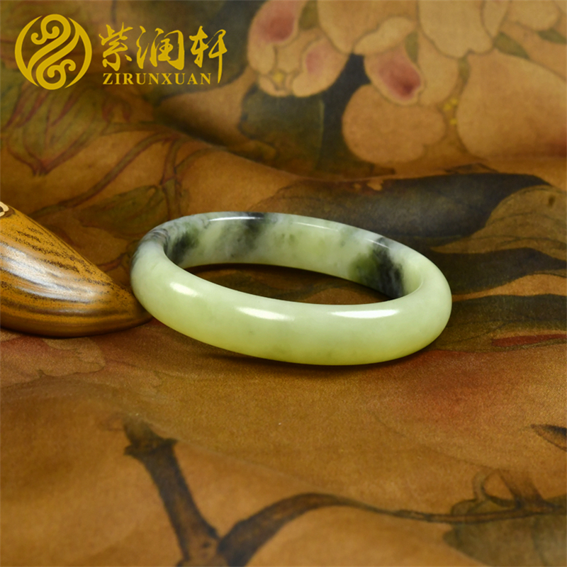 紫润轩新疆和田玉黄玉青花手镯黄口若羌料黄玉56 7MM纯天然收藏级