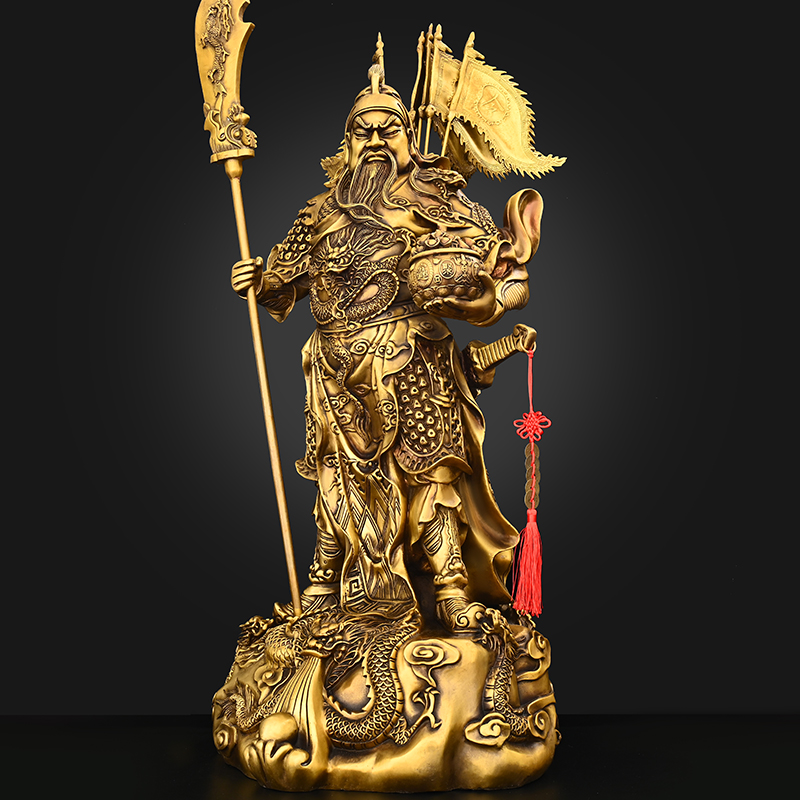 纯铜九龙关公摆件托宝关羽关二爷大号公司开业家居装饰武财神关公
