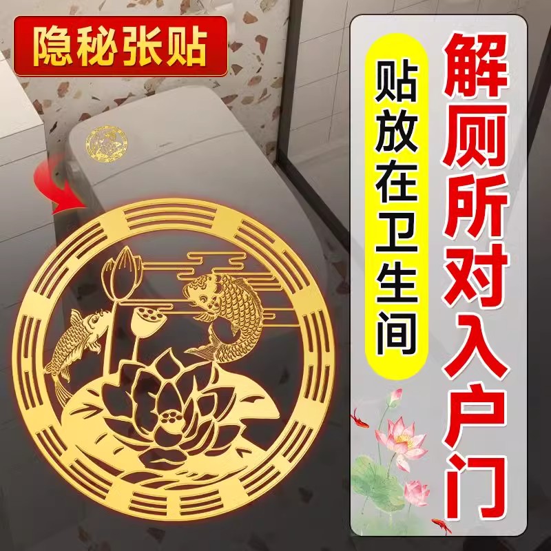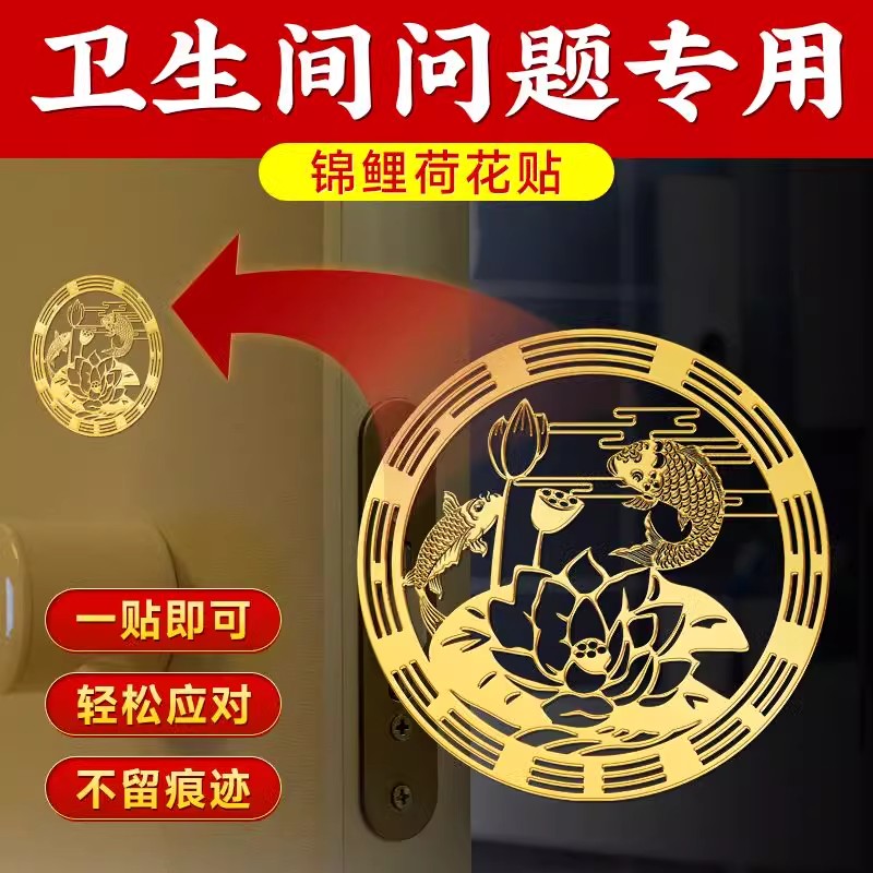 荷花鲤鱼贴卫生间净秽金属贴鲤鱼莲花厕所正东西北对门上挂件贴纸