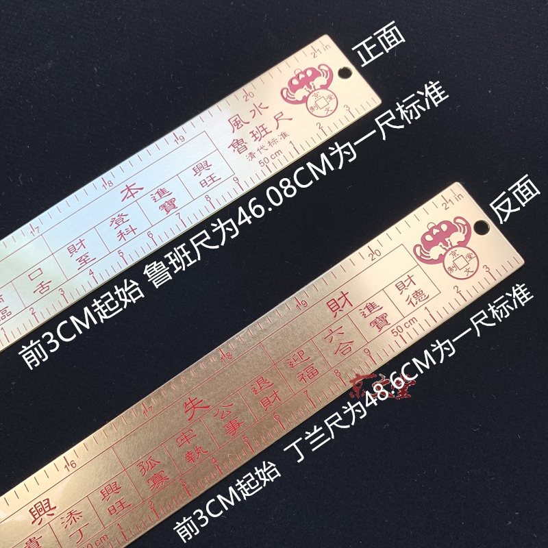 黄铜鲁班尺清代标准一尺46.08CM五帝六帝尺丁兰门光尺吉祥尺54cm