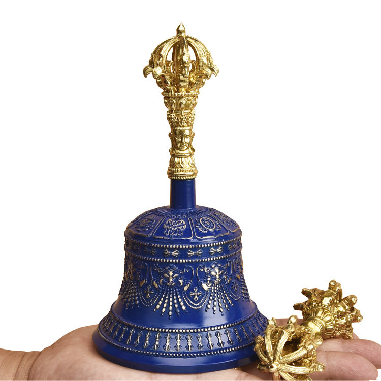 五股金刚铃杵纯铜尼泊尔蓝色九股金刚铃杵家用铃铛八吉祥金刚铃杵