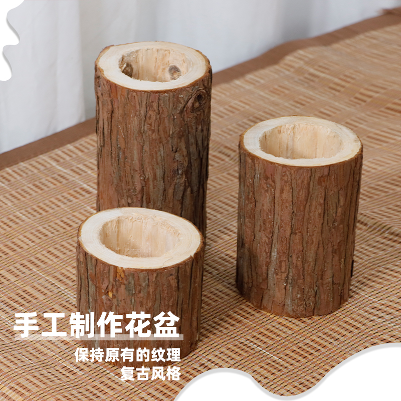 杉木桩木段插花摆件拍摄道具植物花盆木头盆花器枯木桌面造景装饰