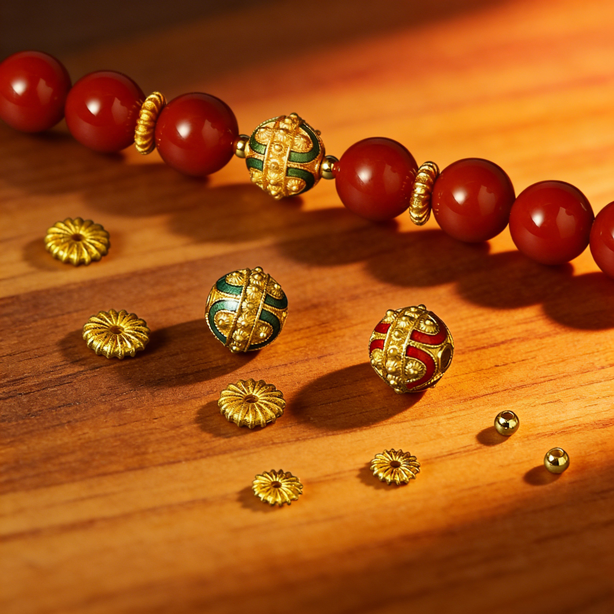 镀金珐琅配珠百搭南红文玩手串隔珠隔片卡环DIY配件搭配水晶玉珠