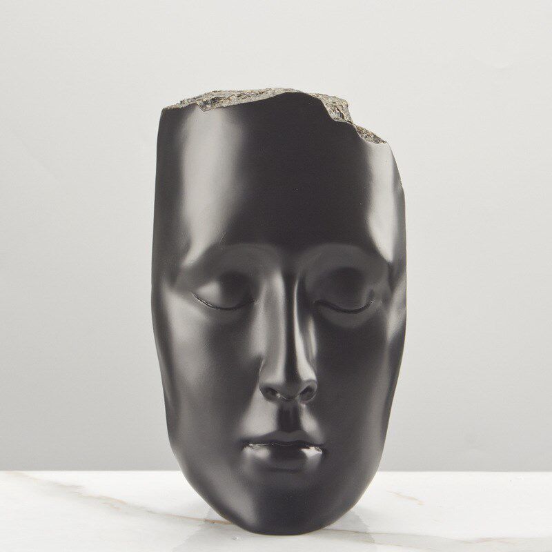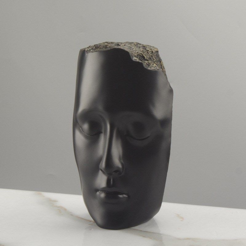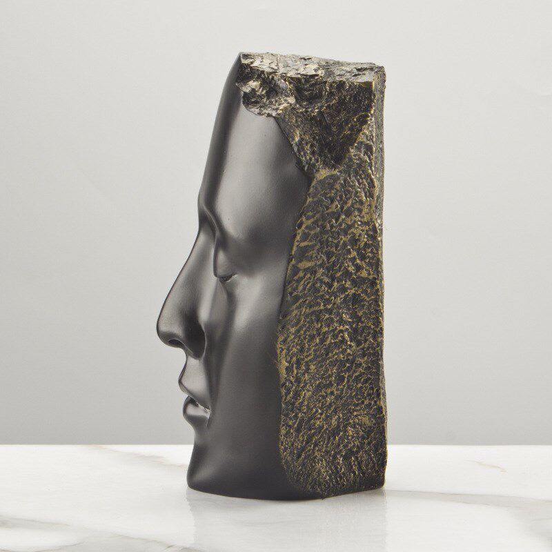 现代家居极简样板房间客厅玄关人脸人像黑色金色面U具雕塑摆件装