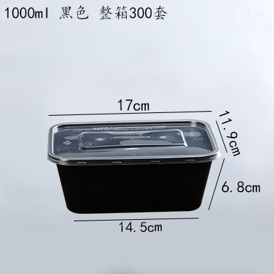 长方形1000ml一次性饭盒快餐盒带盖打包加厚透明便当盒300套