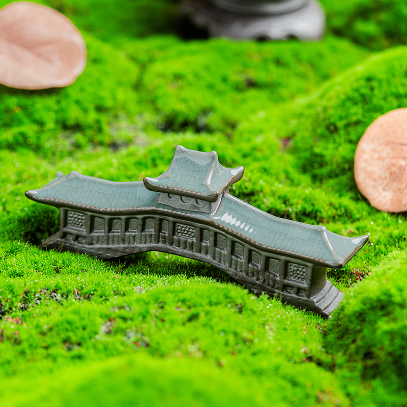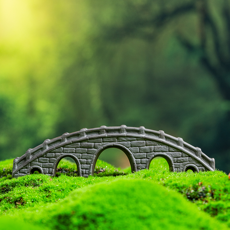 陶瓷微景观中式仿真石拱桥摆件假山流水鱼缸盆景造景装饰廊桥摆设