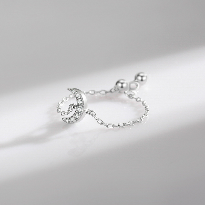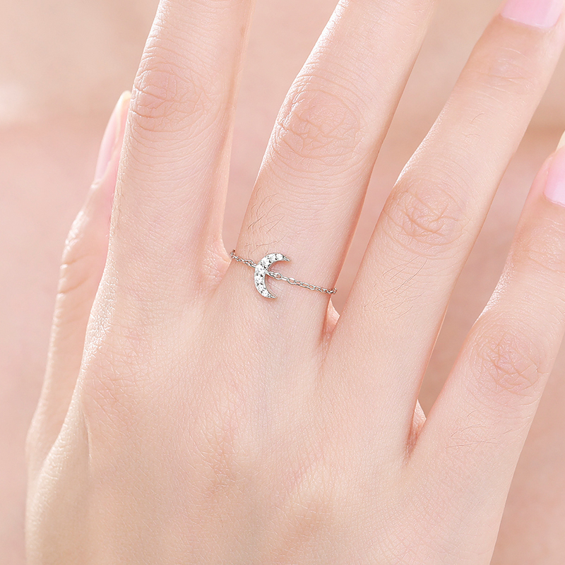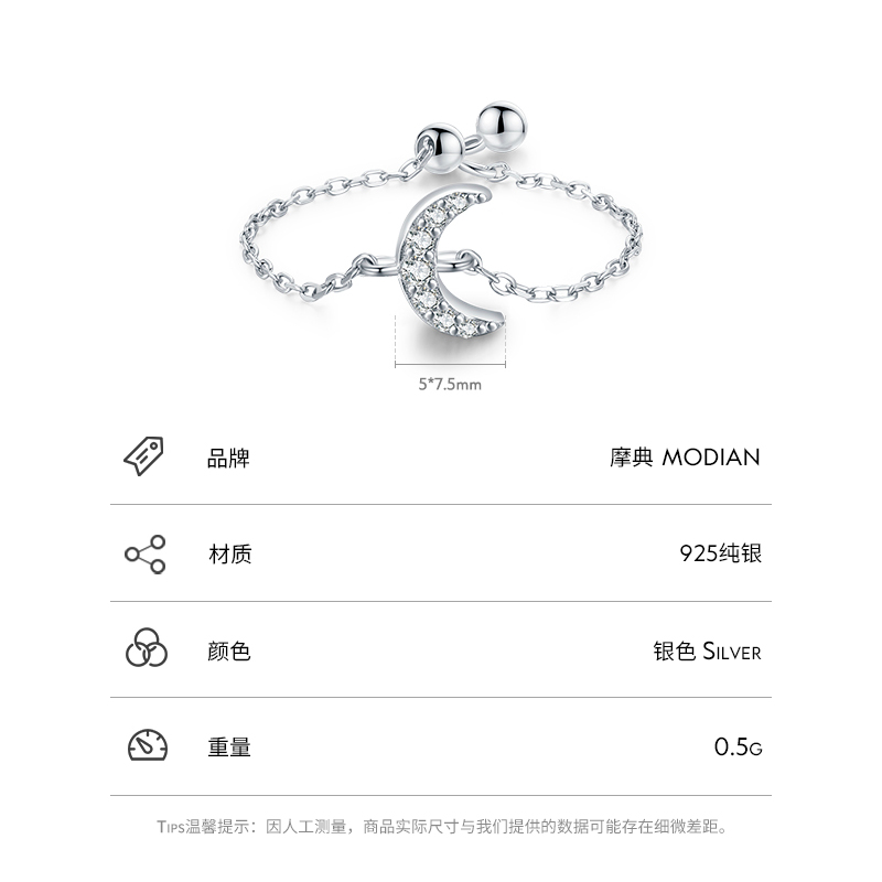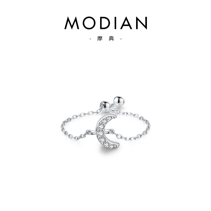 MODIAN 925纯银微镶月亮戒指小众设计感精致小巧轻奢百搭指环饰品
