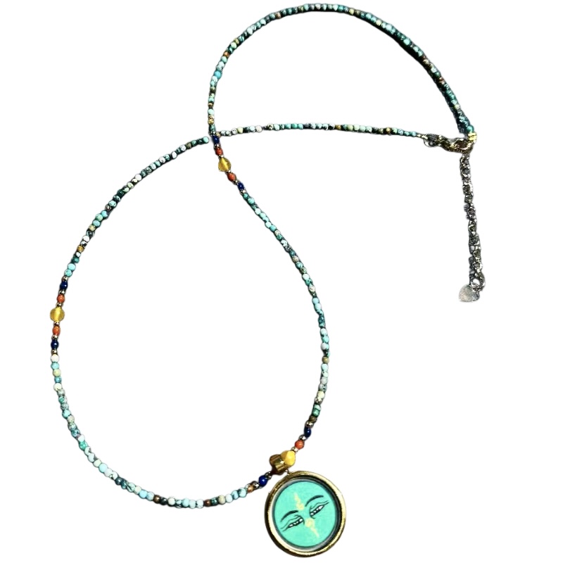 西藏礼物原矿小米珠绿松石项链唐卡绿度母扎基拉姆吊坠毛衣链中式