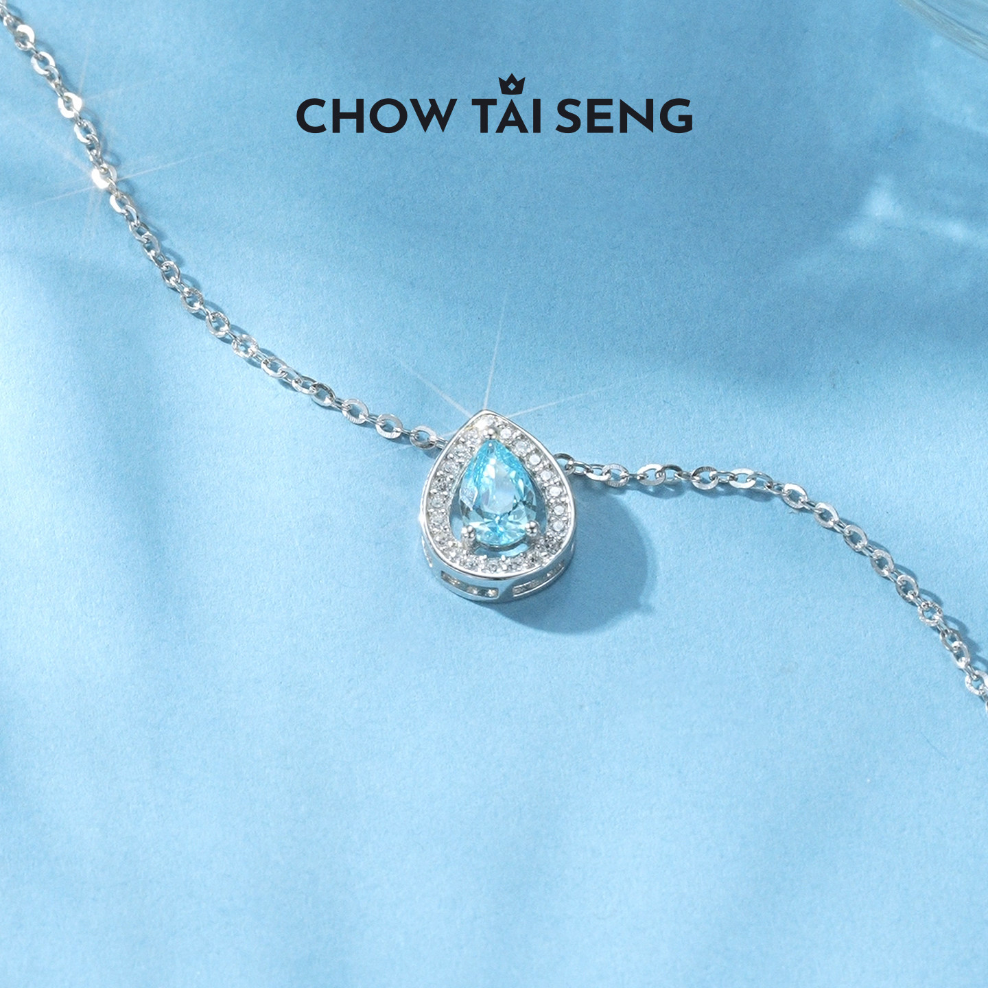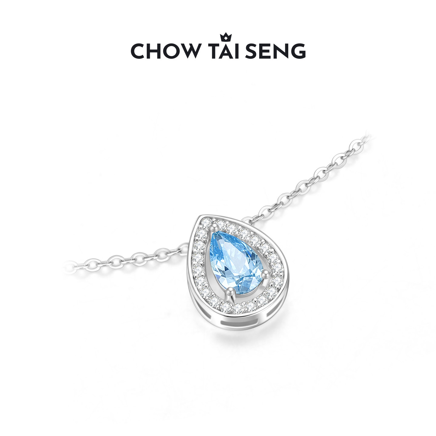 周大生月光海水滴项链S925纯银女高级感轻奢锁骨链生日礼物送女友