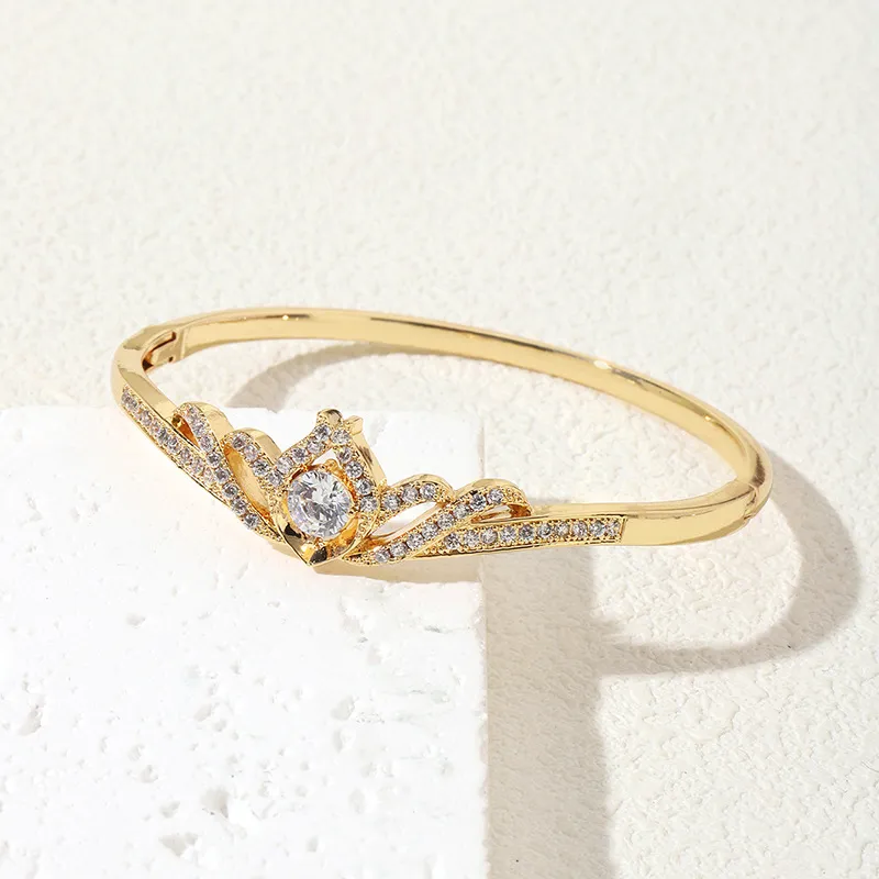 跨境饰品 时尚高级带钻钉子王冠手镯气质新款女士手镯排钻
