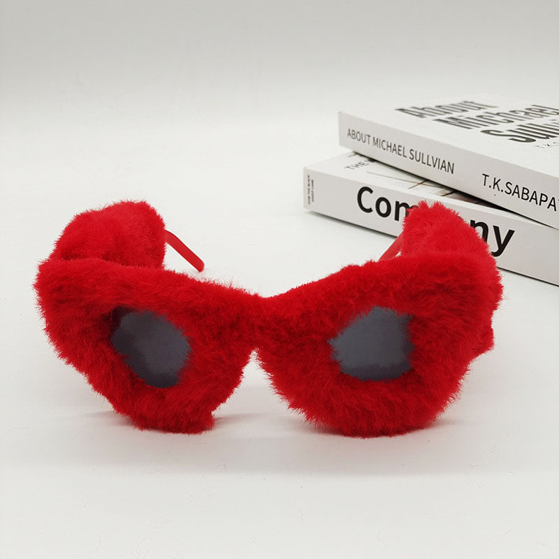 抖音女网红痞幼同款眼镜红色毛毛边复古搞怪墨镜蹦迪拍照道具ins