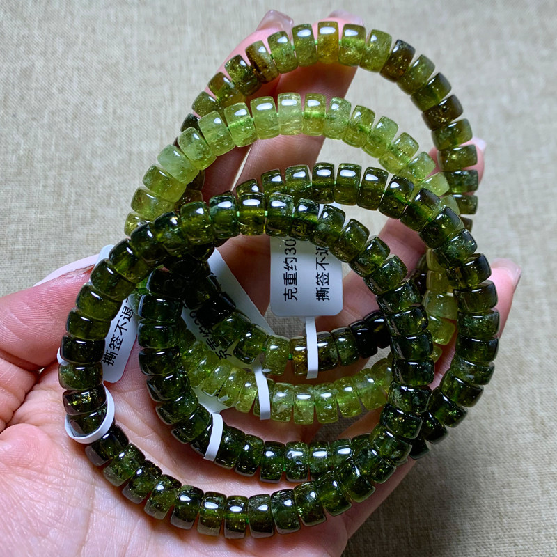 天然沙弗莱石榴石盘珠手链莎弗莱石翠绿色水晶手串情侣礼物男女生