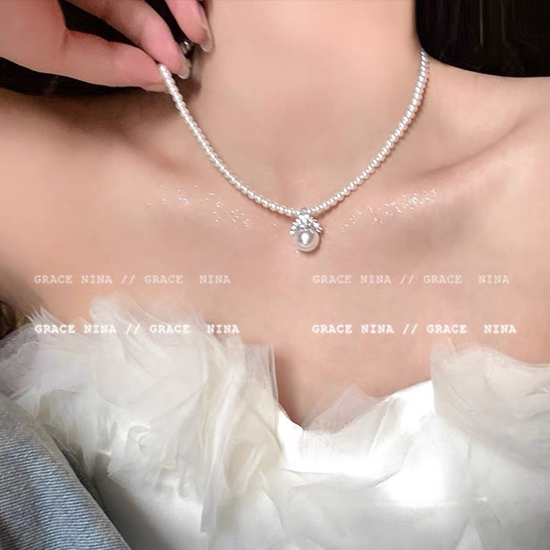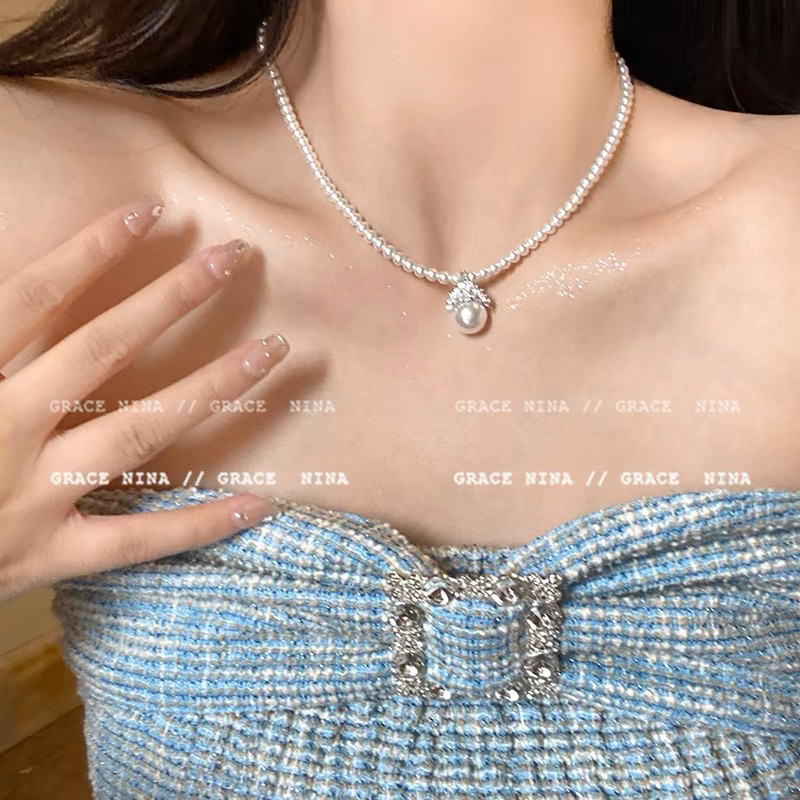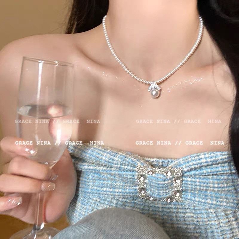 闪锆皇冠珍珠吊坠项链轻奢小众高级感锁骨链配饰女款