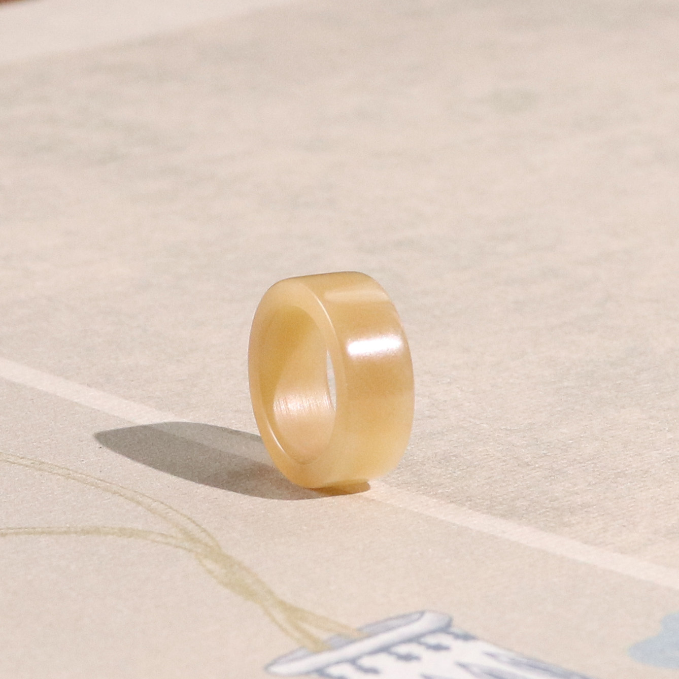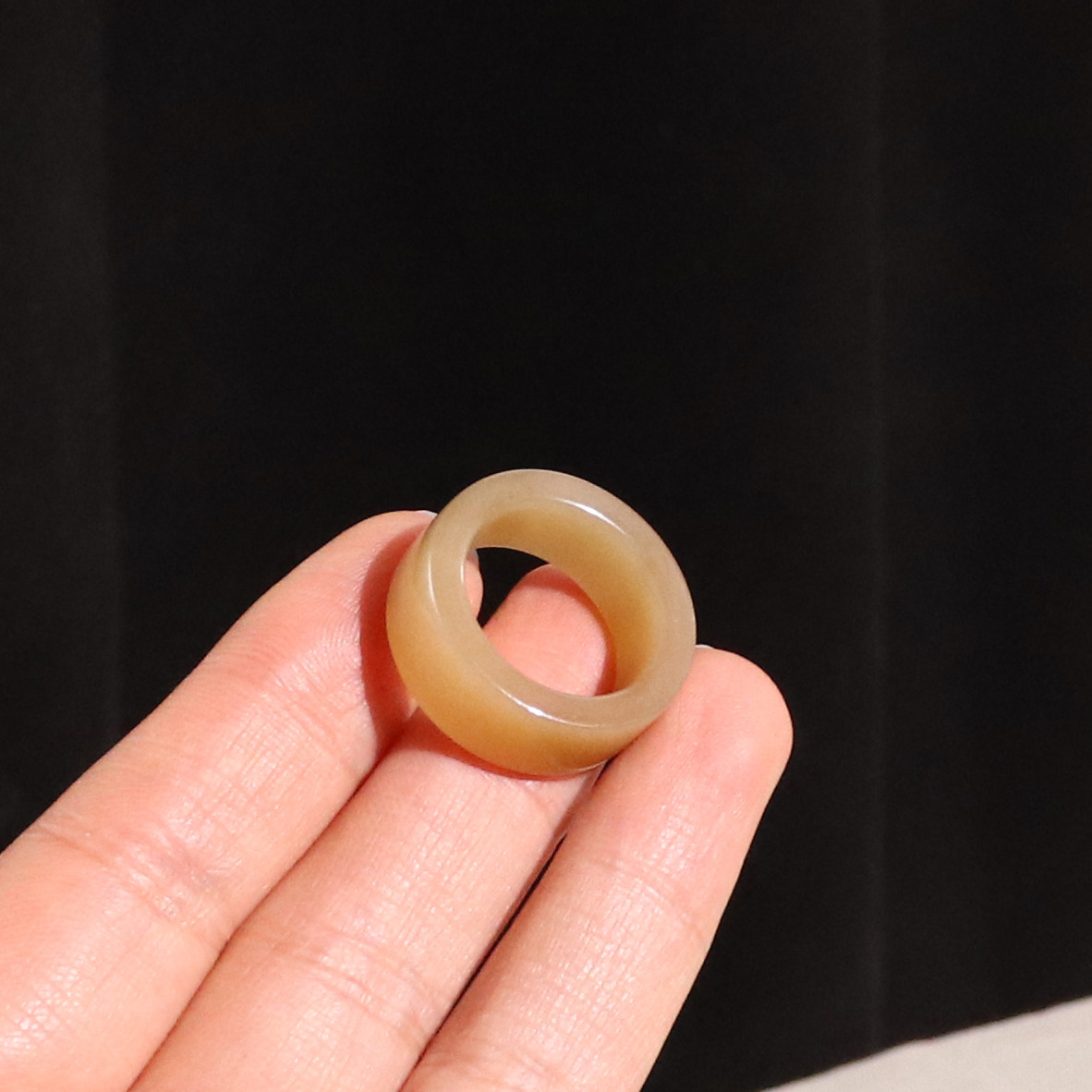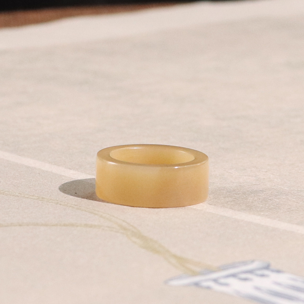 天然和田玉糖玉戒指17号宽版直切黄色招财玉石指环简约百搭叠戴款