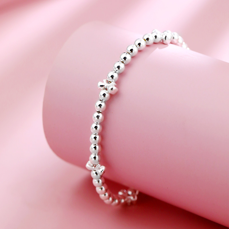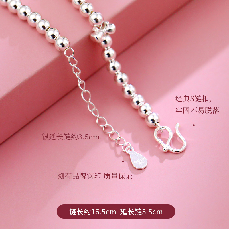 梦祥银S925圆珠银手链女蝴蝶结M扣年轻款简约手串送女友礼物