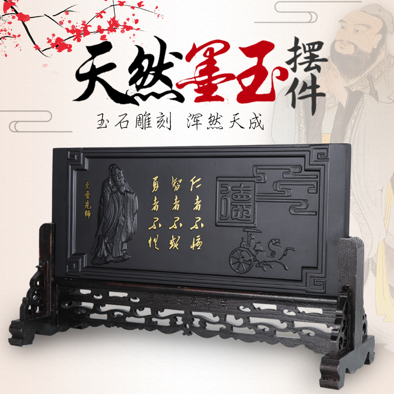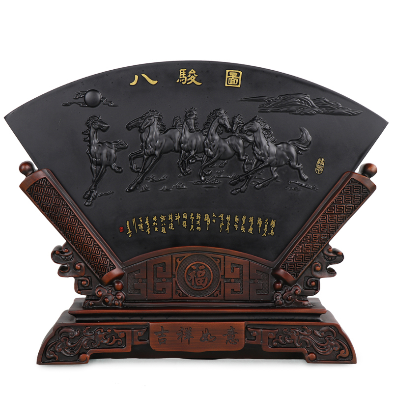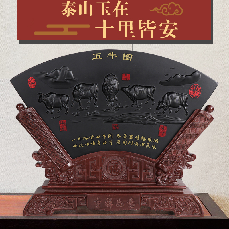 正宗泰山石敢当摆件墨玉原石五牛图八骏图工艺品客厅办公室装饰品