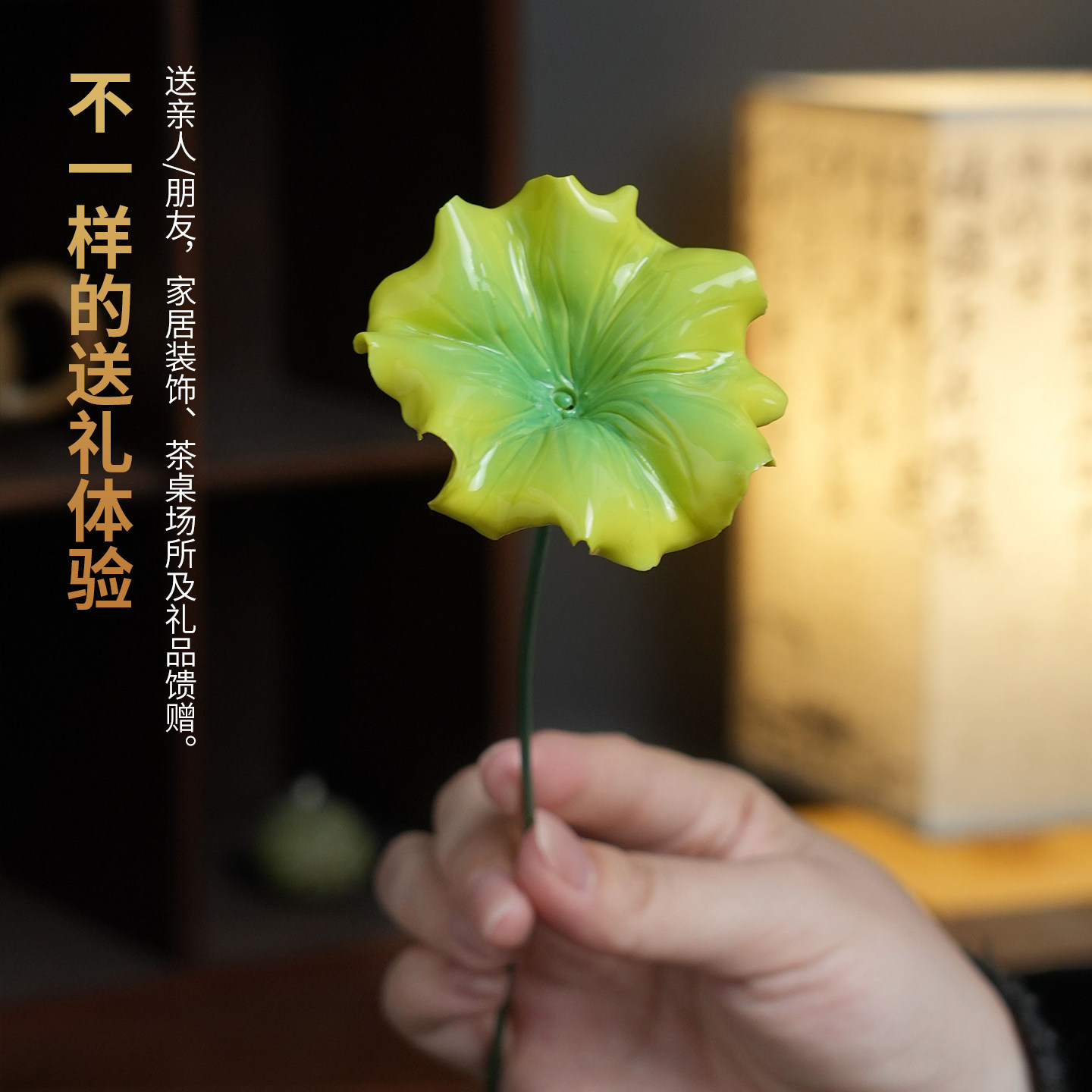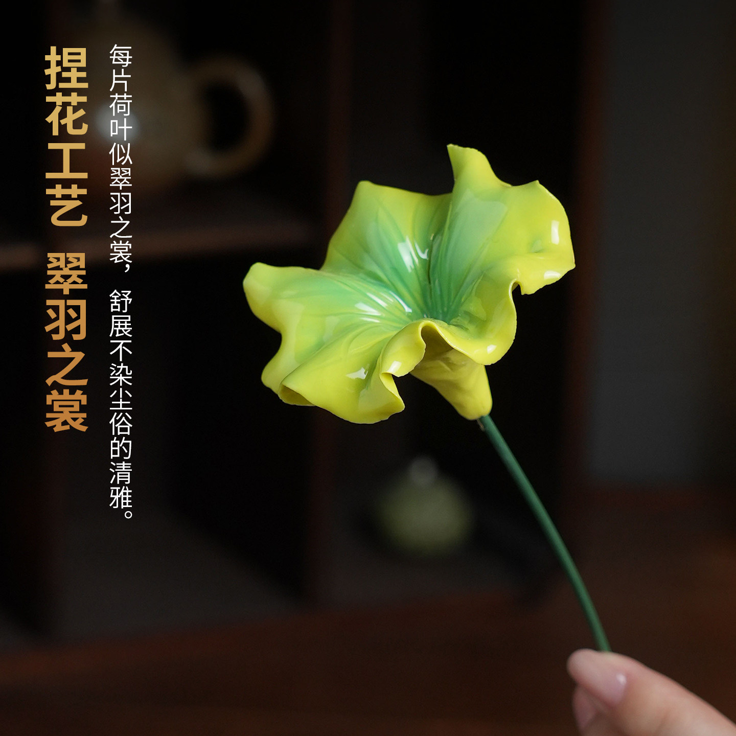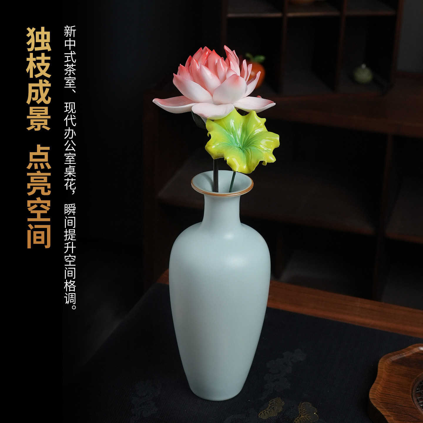 荷叶花枝|非遗陶瓷花朵摆件仿真花插釉下彩客厅装饰女生生日礼物