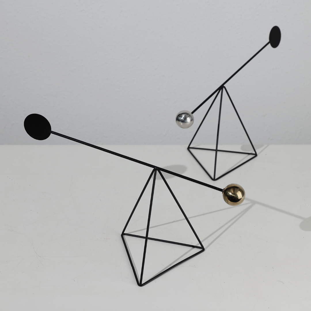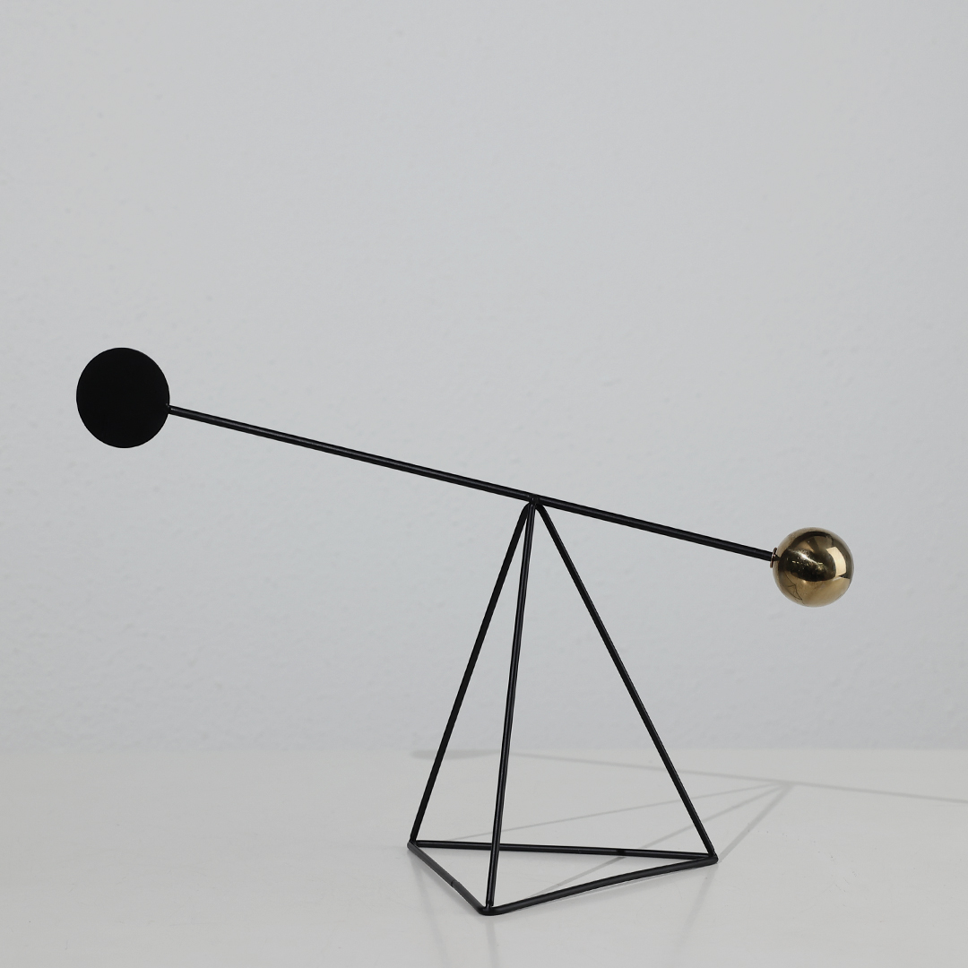 现代创意几何金属三角体平衡摆件北欧式极简样板房间售楼处装饰品