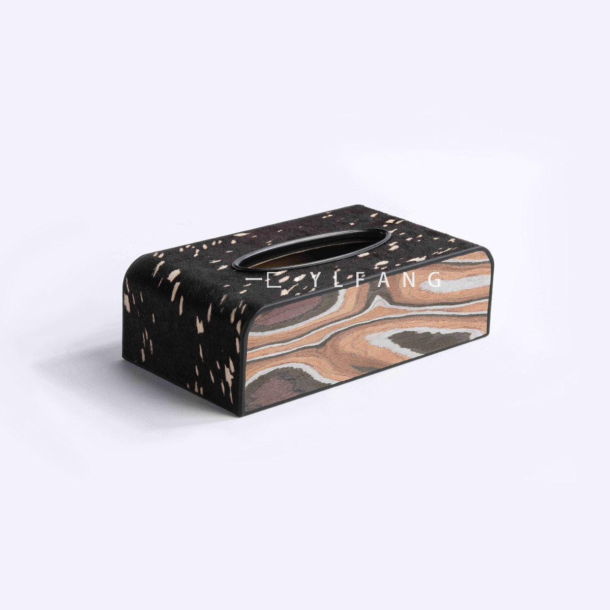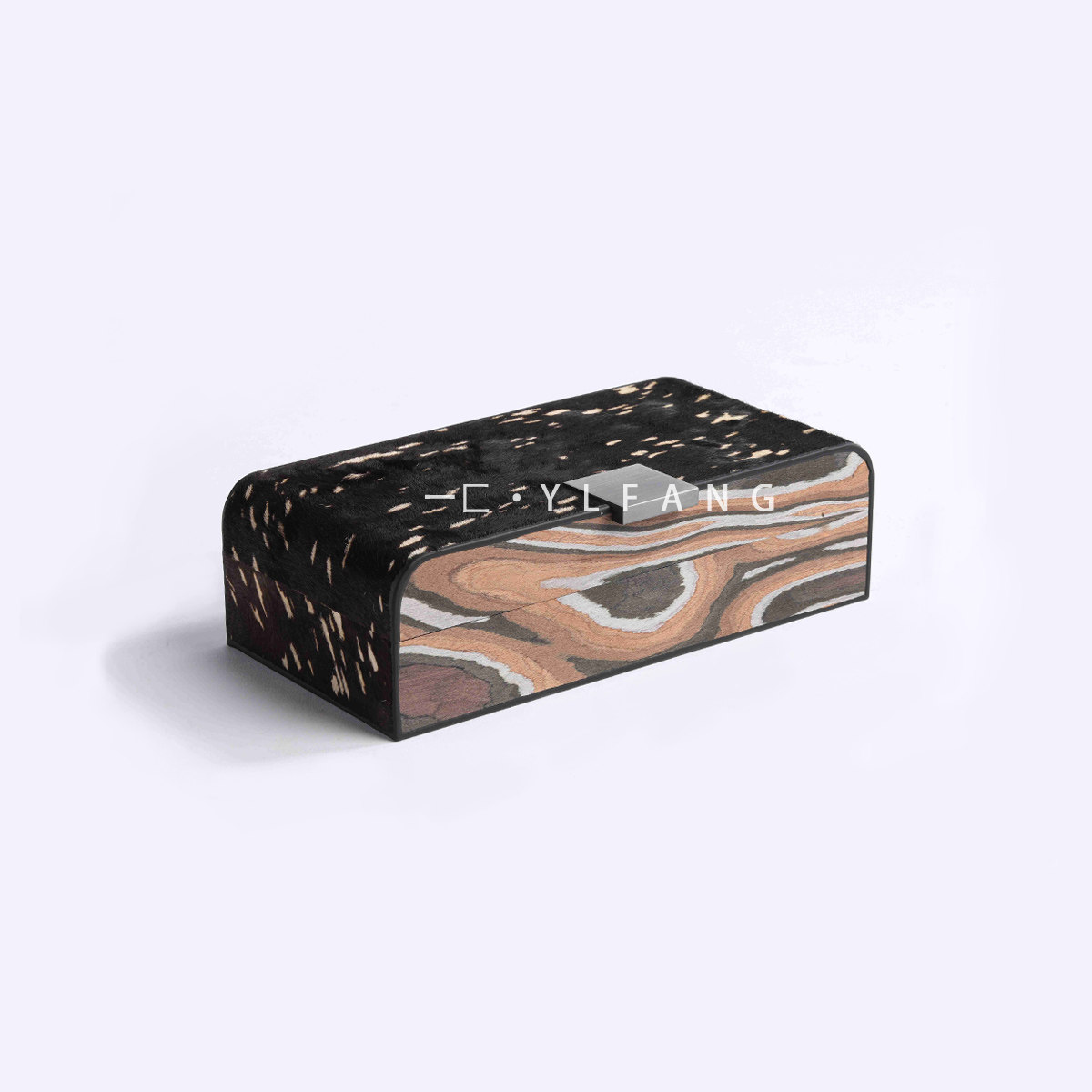 一匚 现代轻奢棕色水纹纹理马毛组合摆件 样板间储物盒纸巾盒饰品