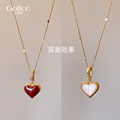 酒红色复古滴釉爱心项链女2025新款爆款气质颈链锁骨链秋冬毛衣链