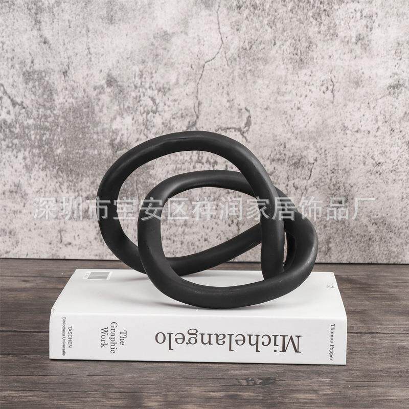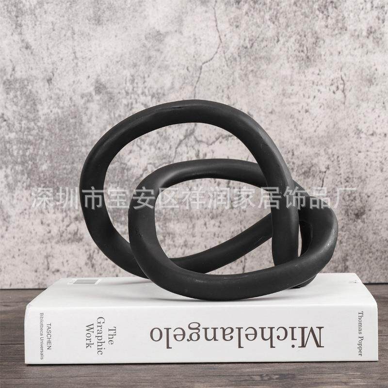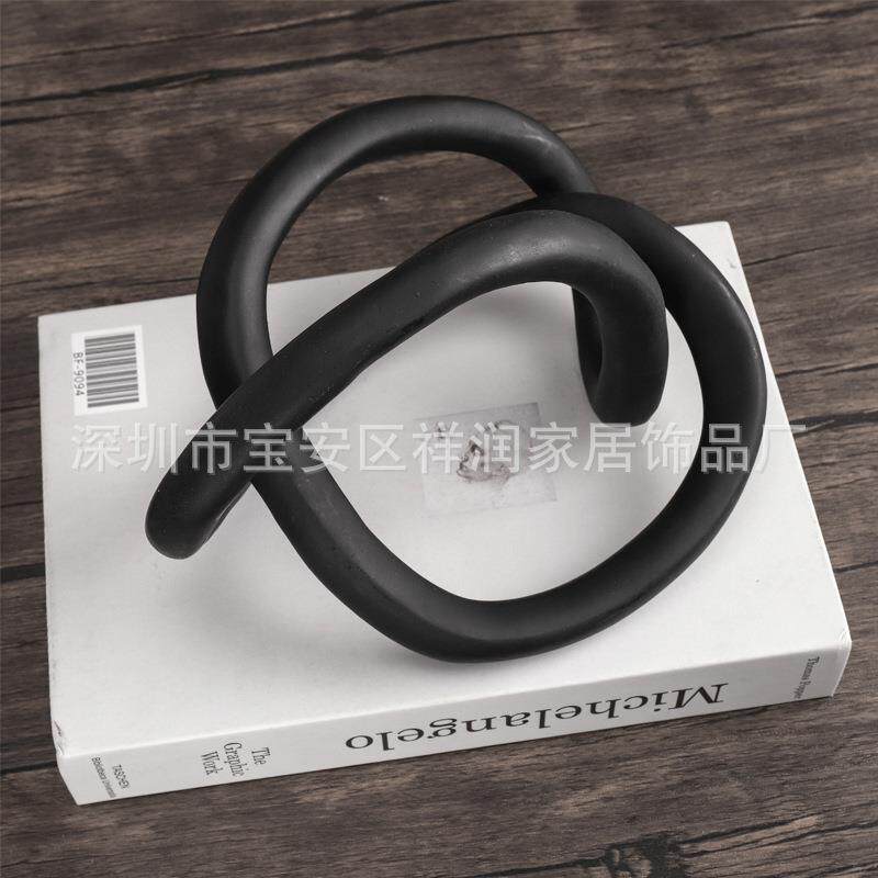 现代简约黑色树脂抽象绳结摆件书镇样板房售楼处客厅软装饰品摆设