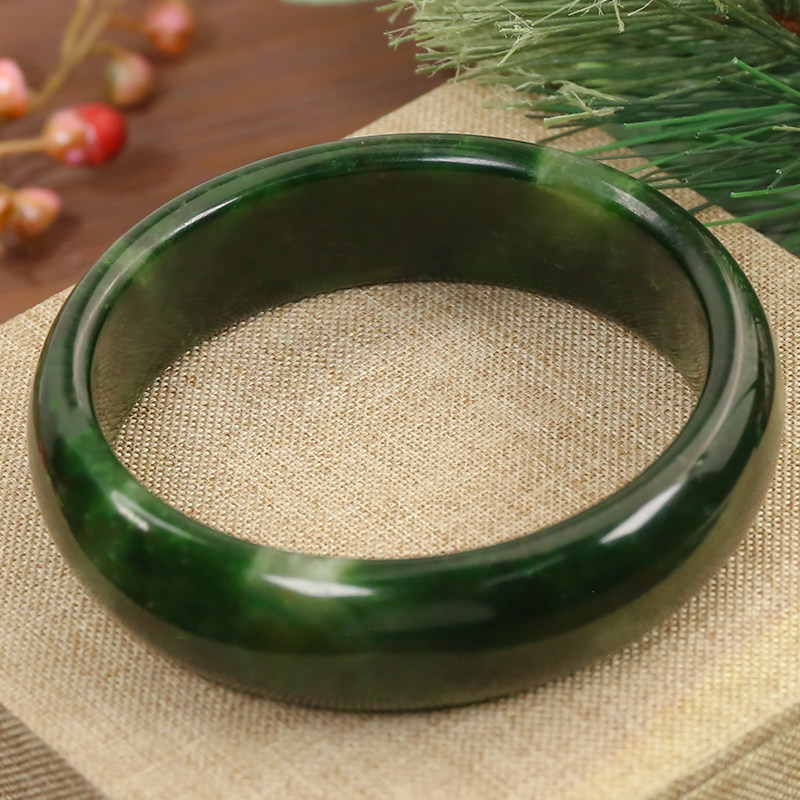 洛丽亚天然和田玉碧玉 飘辣绿气质大气宽边款手镯